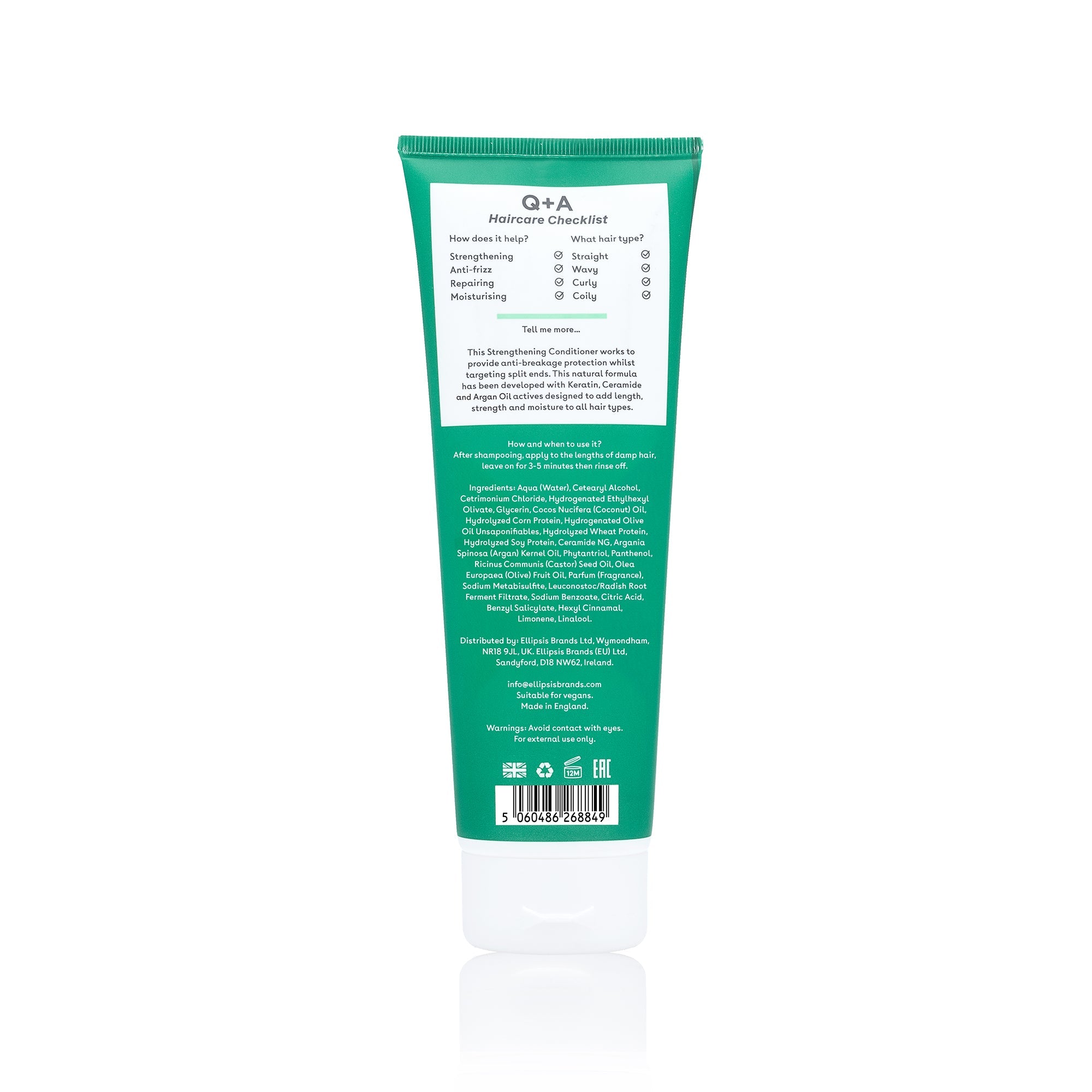 Ingredients: Aqua (Water), Cetearyl Alcohol, Cetrimonium Chloride, Hydrogenated Ethylhexyl Olivate, Glycerin, Cocos Nucifera (Coconut) Oil, Hydrolyzed Corn Protein, Hydrogenated Olive Oil Unsaponifiables, Hydrolyzed Wheat Protein, Hydrolyzed Soy Protein, Ceramide NG, Argania Spinosa (Argan) Kernel Oil, Phytantriol, Panthenol, Ricinus Communis (Castor) Seed Oil, Olea Europea (Olive) Fruit Oil, Parfum (Fragrance), Sodium Metabisulfite, Leuconostoc/Radish Root Ferment Filtrate, Sodium Benzoate, Citric Acid, Benzyl Salicylate, Hexyl Cinnamal, Limonene, Linalool.